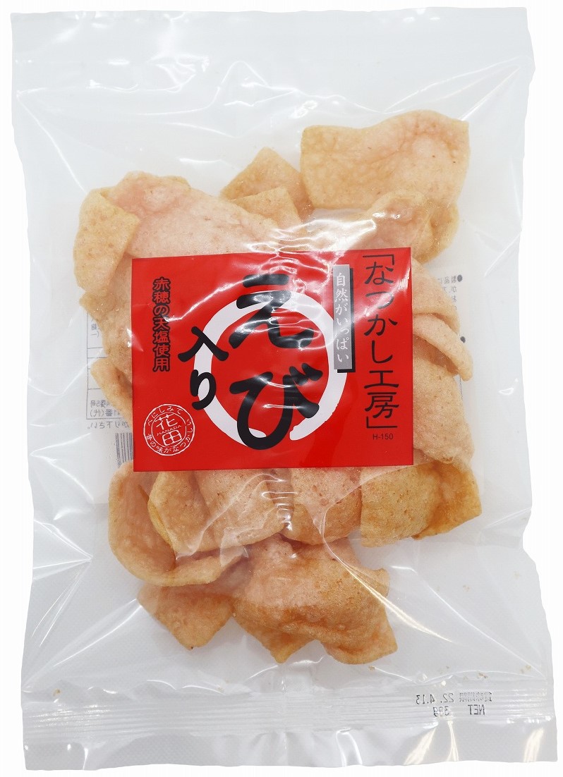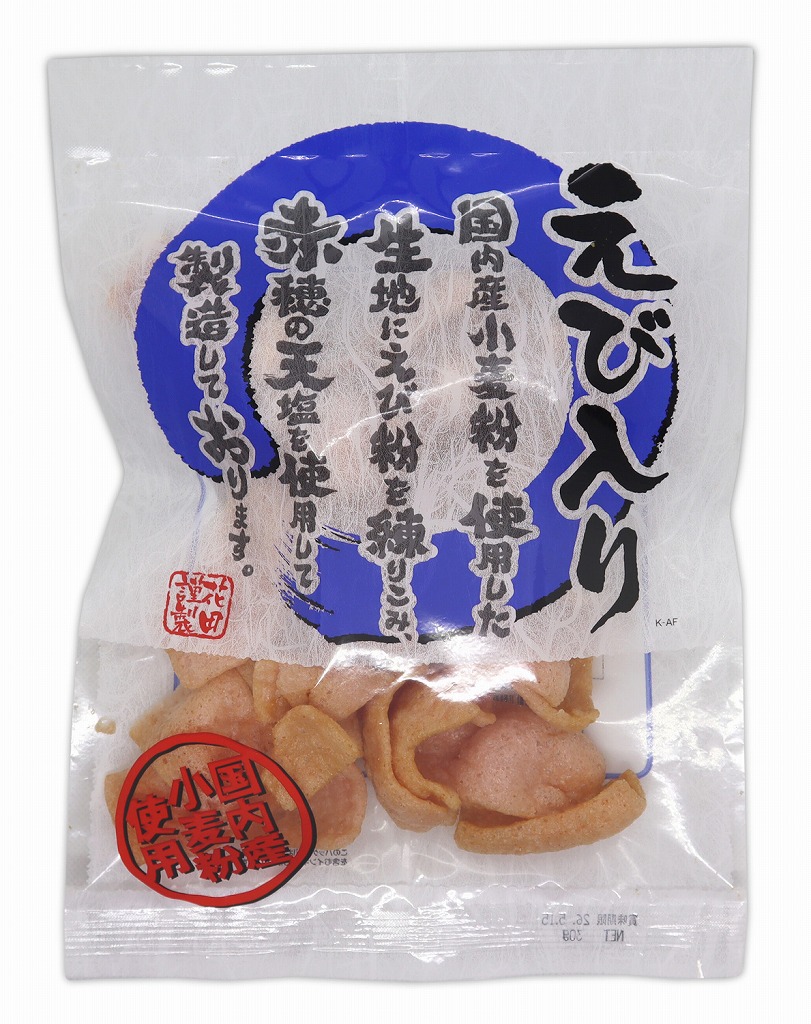国産小麦粉を使用した生地にえびを練りこみ、化学調味料を使わず、赤穂の天塩を使用して製造しております。 |