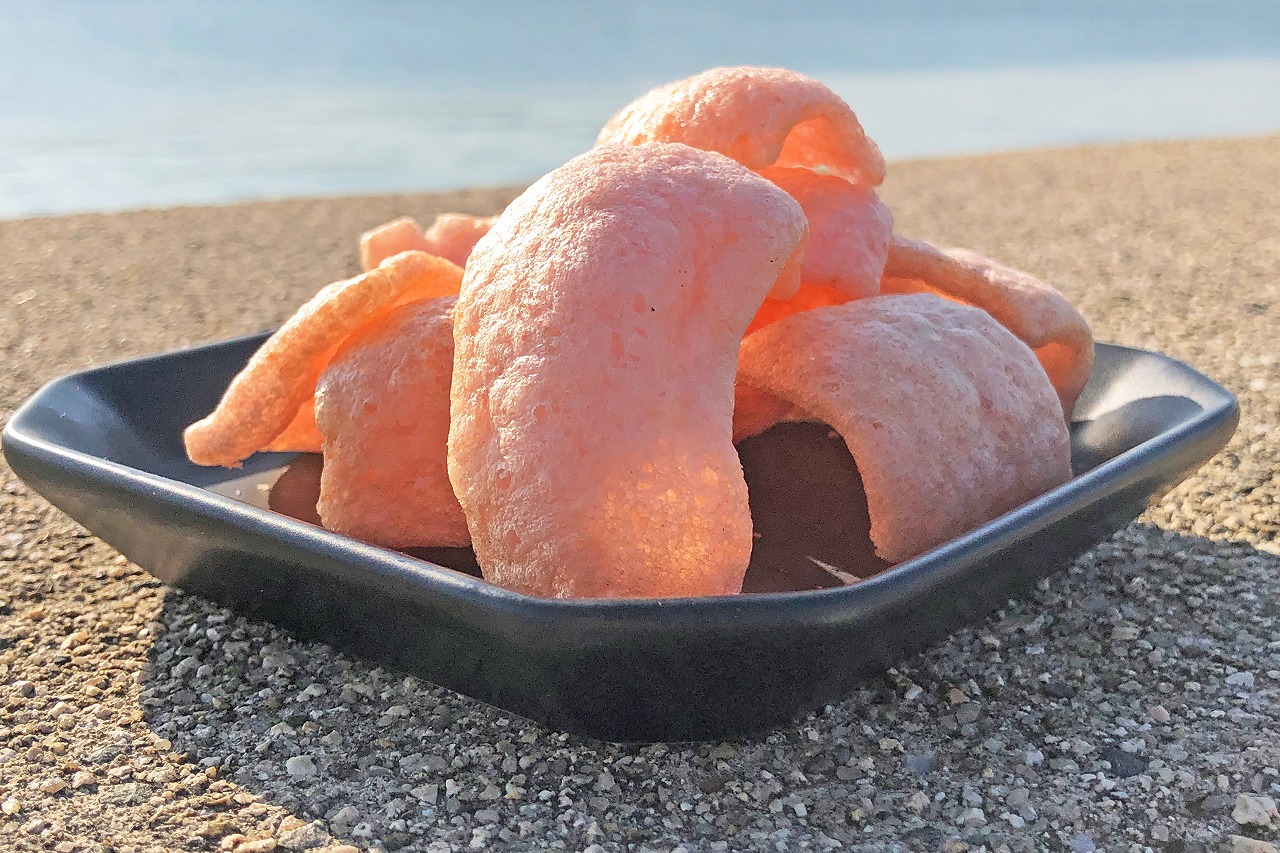 - えびを使用してほんのりえびの風味の塩味スナック。