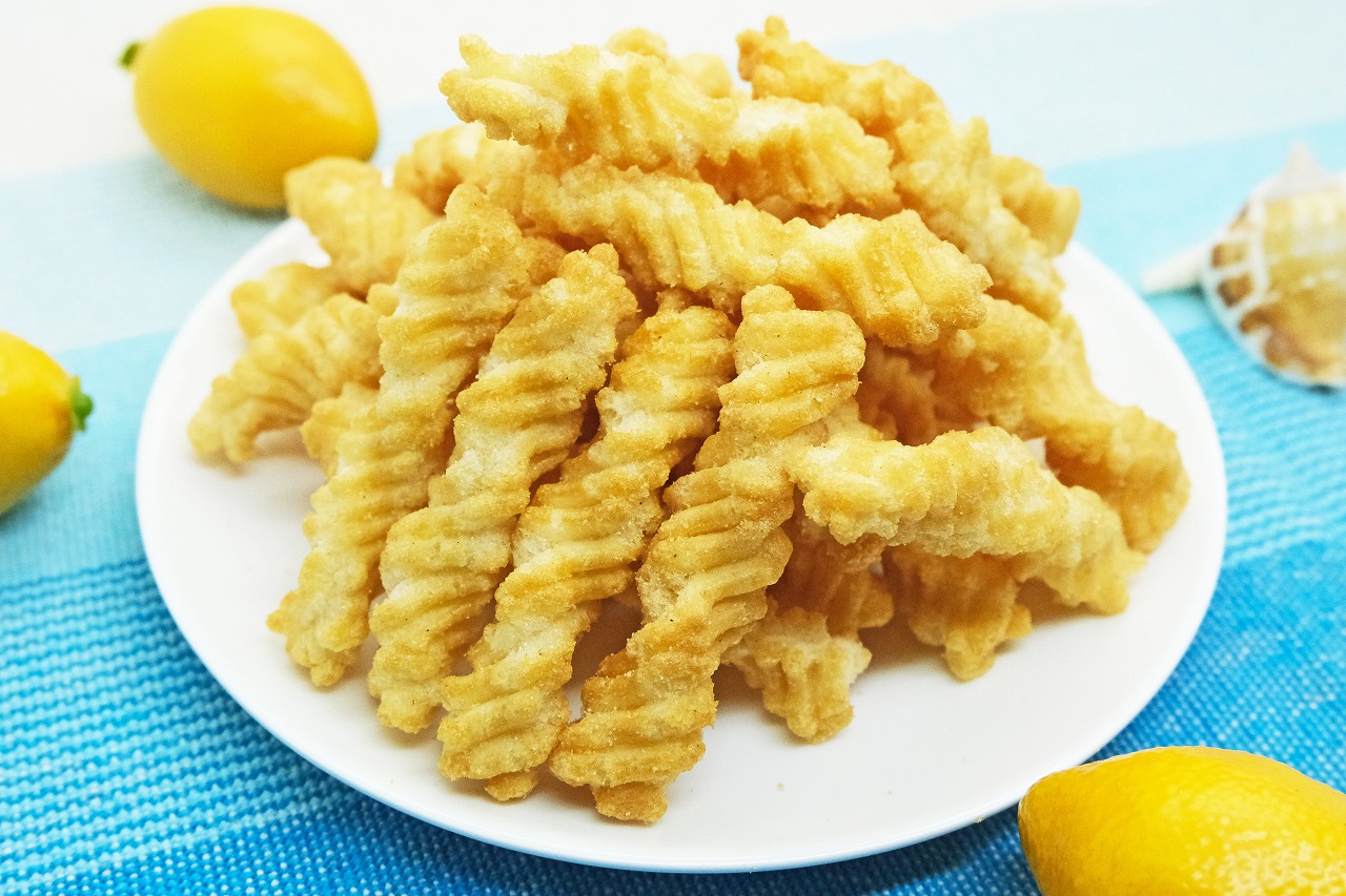 - ゆず、すだちを使用した倉敷鉱泉の人気調味料「塩ぽんず」の豊かな味わいを再現したスナック菓子です。後味さっぱりで爽やかな柑橘の風味が口いっぱいに広がる美味しさです。