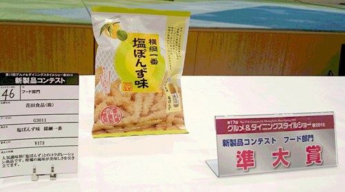 新製品 コンテスト・フード部門 「塩ぽんず味 横綱一番」 準大賞 を頂きました。 |