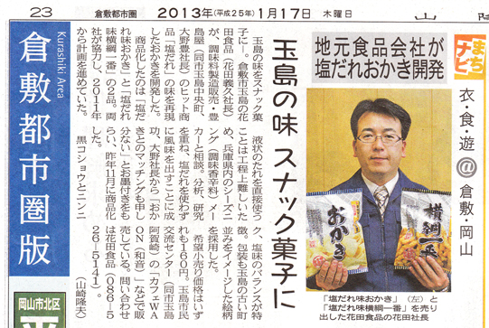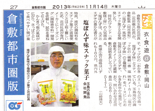 山陽新聞「倉敷都市圏版」に塩ぽんず味商品が掲載されました!